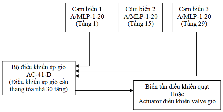 4. Sơ đồ hệ thống điều khiển áp gió cầu thang hoàn chỉnh: